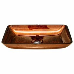Vinnova Glass Rectangular Vessel Bathroom Sink Without Faucet, Reddish Brown