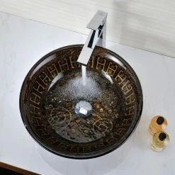 ANZZI Cansa Series Deco-Glass Vessel Sink In Rich Timber