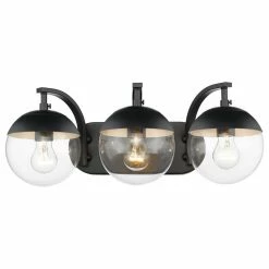 Golden Lighting Dixon 3-Light Bath Vanity, Black, Clear Glass And Black Cap