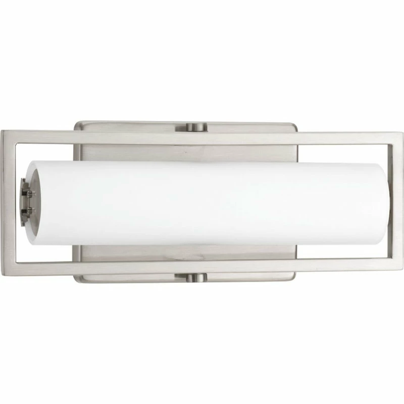 Modern architectural styling frames with an integrated LED source and circular etched opal glass. For increased design options, fixtures can be installed horizontally or vertically. Frame bath and vanity fixture provides beautiful and continuous illumination, as well as energy saving benefits. 3000K, 90+ CRI.