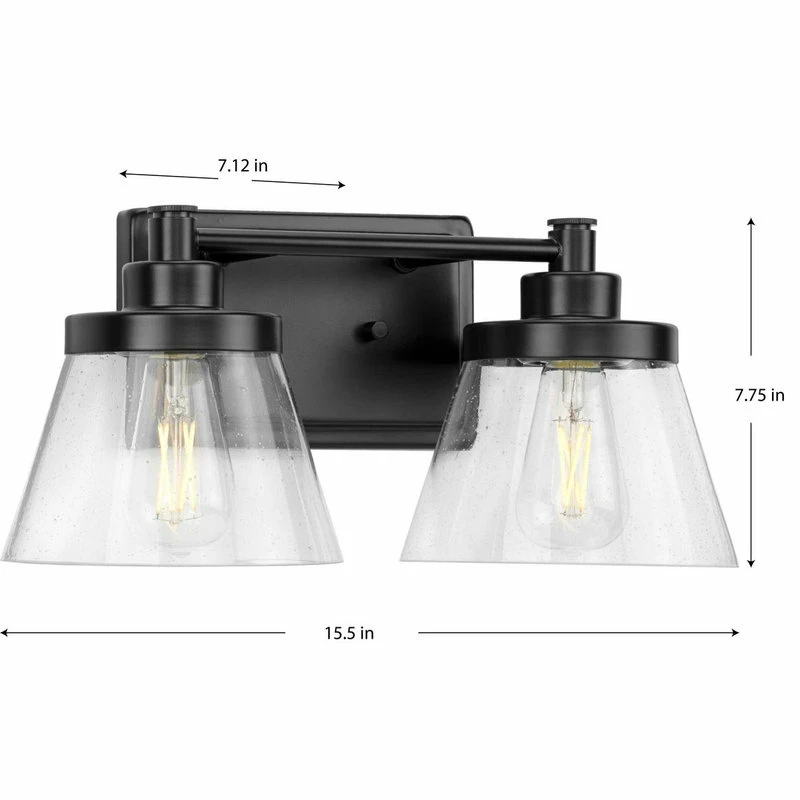 Be the first to review “Progress Lighting Hinton 2-Light Matte Black Clear Seeded Glass Farmhouse Bath Vanity Light” Cancel reply