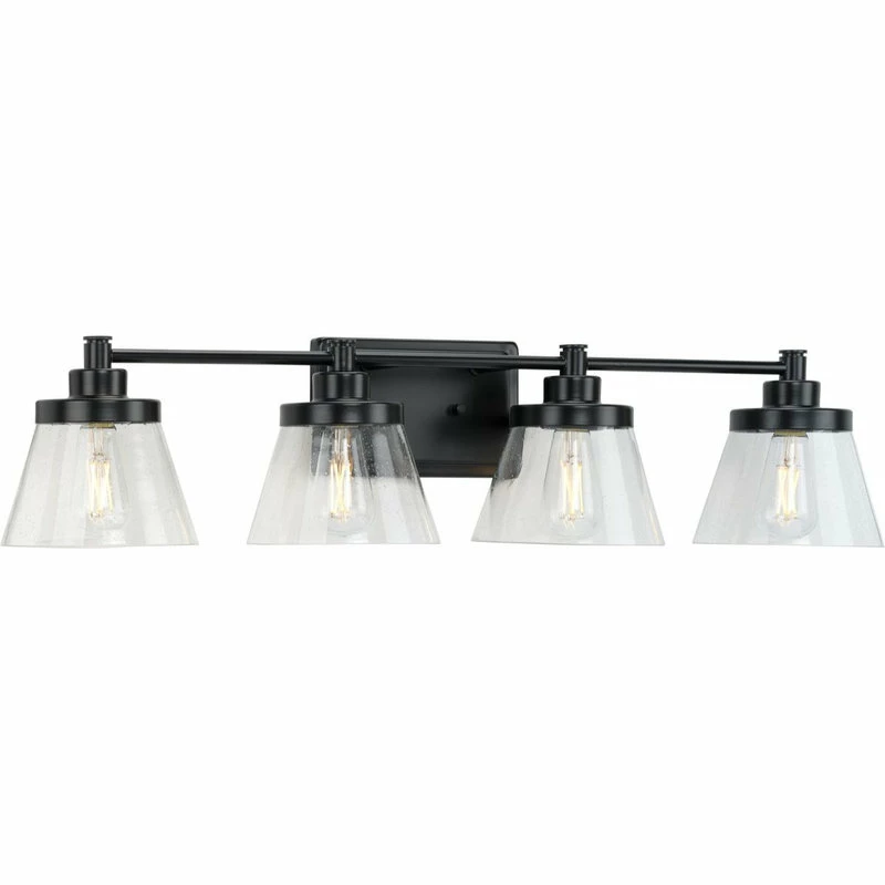 Be the first to review “Progress Lighting Hinton 4-Light Black Clear Seeded Glass Farmhouse Bath Vanity Light” Cancel reply
