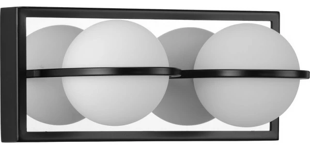 Combine elements of simple geometry with the Pearl LED Collection 2-Light Matte Black Opal Glass LED Modern Bath Vanity Light.