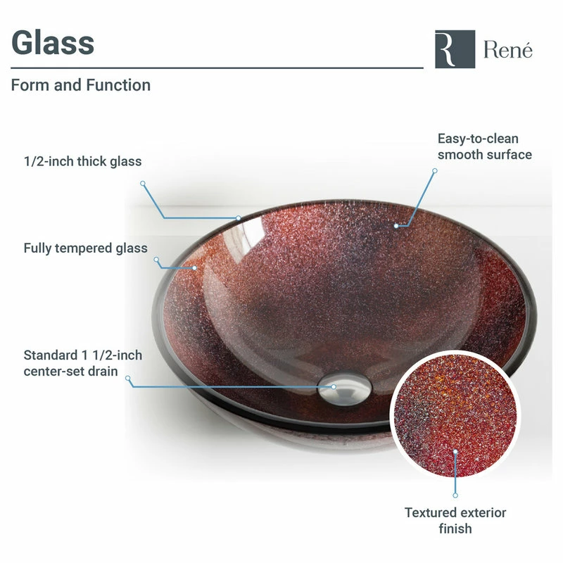- SUPPORTIVE EXTRAS – Matching waterfall faucet, vessel pop-up drain, and sink ring
