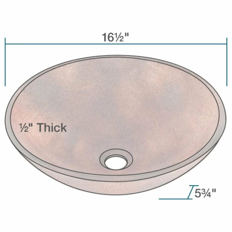 The stippled exterior is frosted, while various tones of brown, red, and yellow cut glass radiate from the highly-polished interior. As with all our glass vessels, the R5-5014 is constructed to be bold and beautiful. Only extra-thick, tempered glass is used in its manufacture. High temperatures will not mar it in any way. Good hygiene comes naturally, as glass is non-porous. Staining or retention of odors is unheard of. Clean up is simple. It measures 16 1/2″ x 16 1/2″ x 5 3/4″, and is guaranteed to remain functional and engaging for life. The waterfall-style faucet is soundly constructed of premium-quality, solid brass components. The disc encircling the spout is formed from the same material as the basin below. Gracefully bending over the basin is a curved shaft topped with a toggle control handle, all in an attractive oil-rubbed bronze finish. To stabilize this curved basin above the vanity, this oil-rubbed bronze sink ring is included. With a simple press to its handsome, oil-rubbed bronze dome; the included, spring-loaded, vessel pop-up drain can be opened or closed.