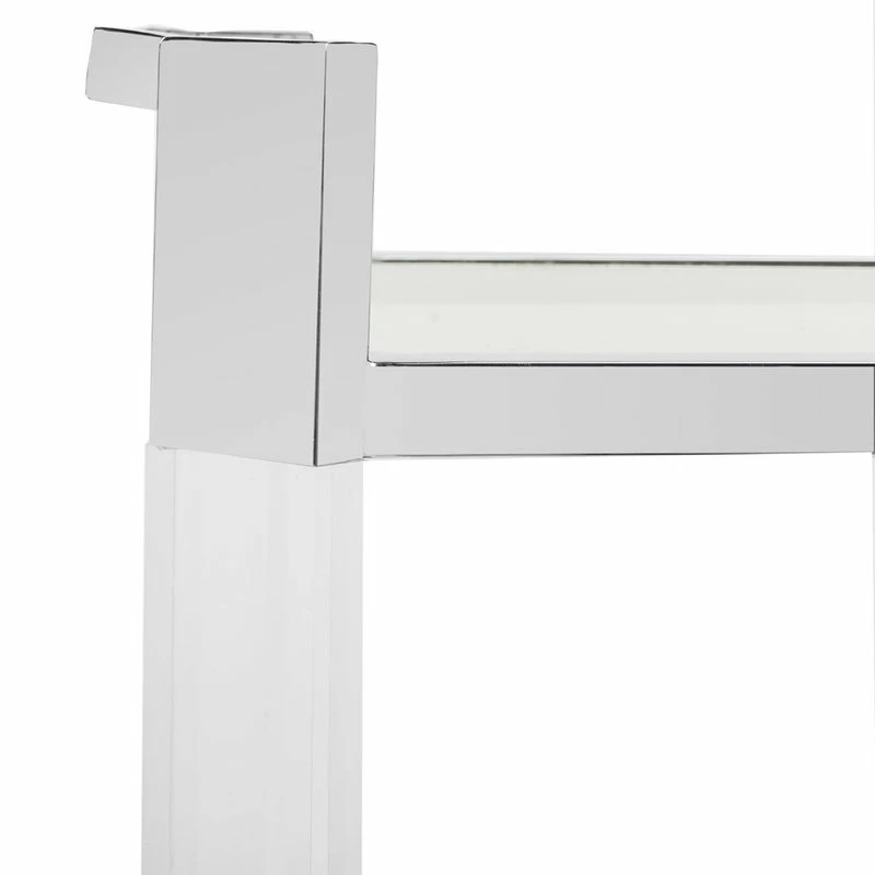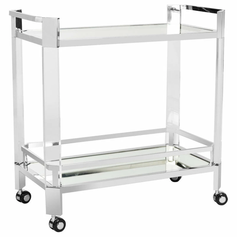 Designed to recall London’s infamous art deco hotel, this contemporary glass bar trolley raises the bar in any room. Its two acrylic, glass and mirrored tiers feature polished stainless steel detail. Its ample handles make transporting cocktails a breeze.