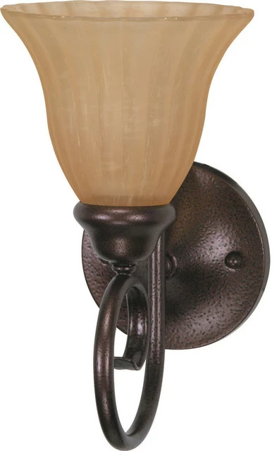 Be the first to review “Satco Products Copper Bronze And Champagne Linen Glass Energy Saving Wall Sconce” Cancel reply