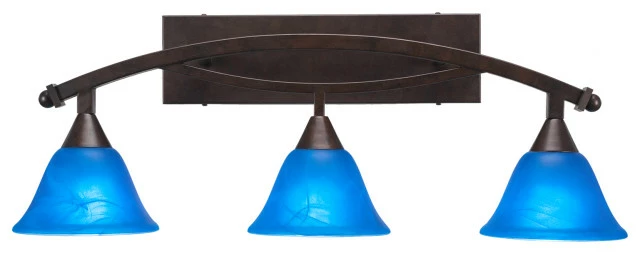 - Bow 3 Light Bath Bar Shown In Bronze Finish with 7″ Blue Italian Glass