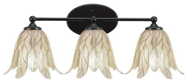 Be the first to review “Toltec Lighting Capri 3 Light Bath Bar, Matte Black Finish, 7″ Vanilla Leaf Glass” Cancel reply