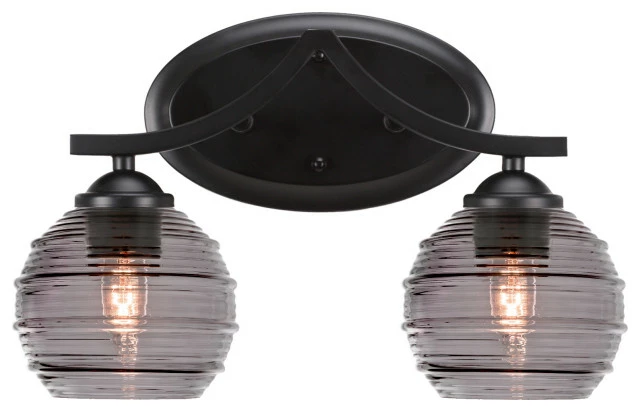 Be the first to review “Toltec Lighting Zilo 2 Light Bath Bar Shown In Matte Black Finish With 6″ Smoke Ribbed Glass” Cancel reply