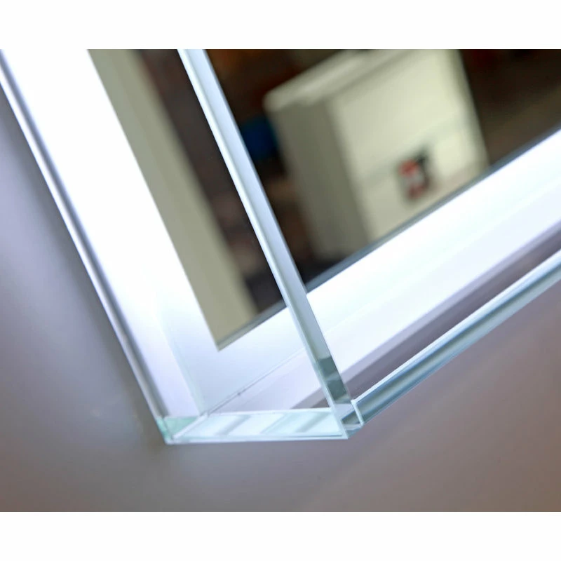 LED lighted bathroom mirror with touch sensor and glass shelf