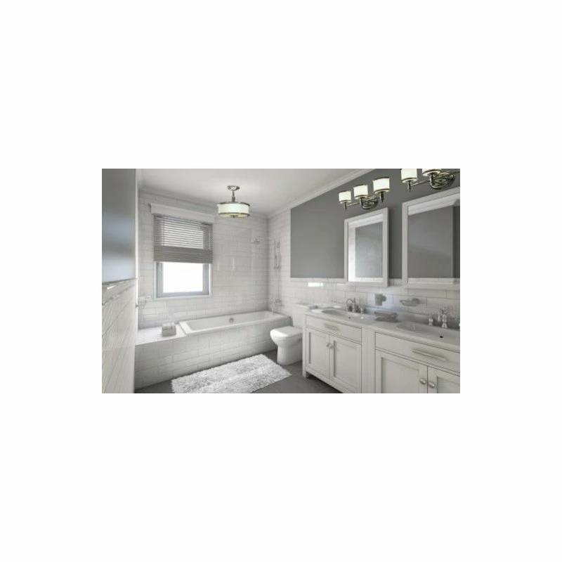 The Carlisle blends formal detailing with relaxed style for a transitional lighting collection that is sure to please. The frosted opal glass cylinders are smartly trimmed in chrome to match the rest of the fixture. This vanity is part of a full collection with coordinating pieces to decorate any room in the house. Versatile reversible mounting option lets you install this fixture up or down.