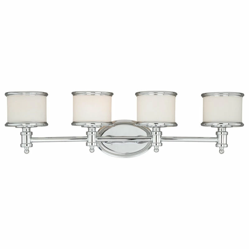 The Carlisle blends formal detailing with relaxed style for a transitional lighting collection that is sure to please. The frosted opal glass cylinders are smartly trimmed in chrome to match the rest of the fixture. This vanity is part of a full collection with coordinating pieces to decorate any room in the house. Versatile reversible mounting option lets you install this fixture up or down.