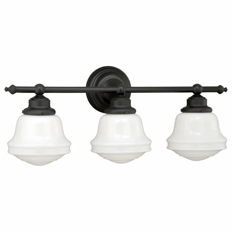 The Huntley is a timeless collection inspired by mid-century small-town aesthetics. The vintage school house glass is the focal point of this design with its unique profile and glass options. Offered in multiple finishes and glass options, this versatile farmhouse light will provide a unique accent to a variety of kitchen, dining, and bathroom settings. Medium screw base lamping provides maximum light output. The complete collection includes chandeliers, pendants, semi-flush ceiling lights, and 1, 2 3, and 4 light bathroom vanities.