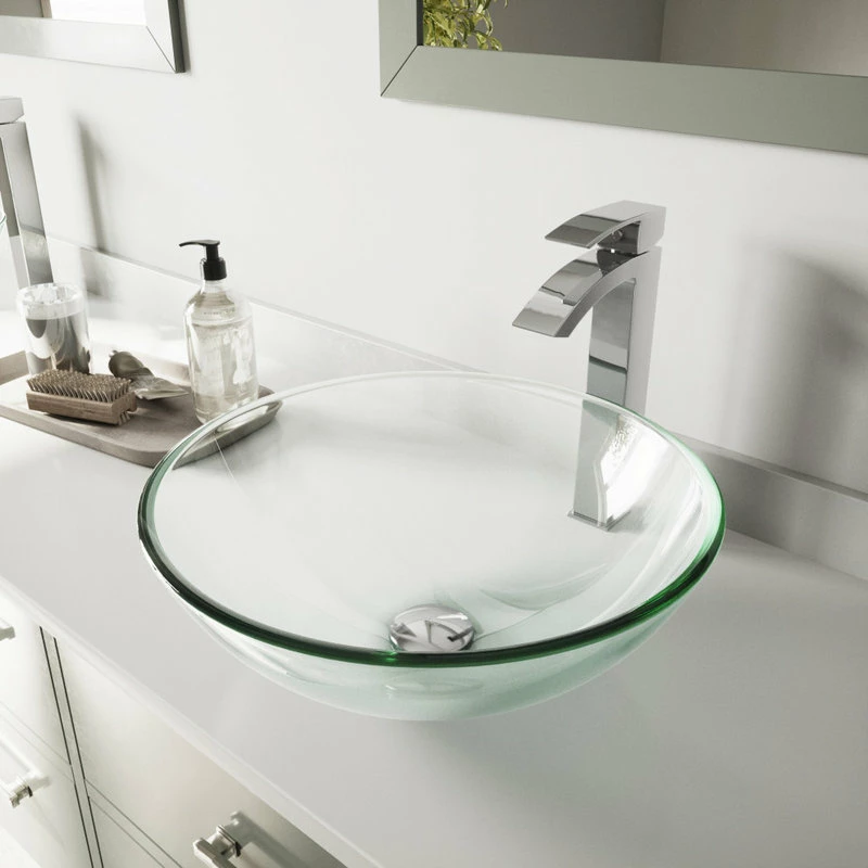 - The VIGO VG07074 Crystalline glass vessel sink is a clear reflection on the counter of your bathroom