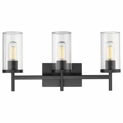 Golden Lighting Winslett 3 Light Bath Vanity, Matte Black With Ribbed Clear Glass