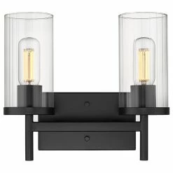 Golden Lighting Winslett 2 Light Bath Vanity, Matte Black With Ribbed Clear Glass