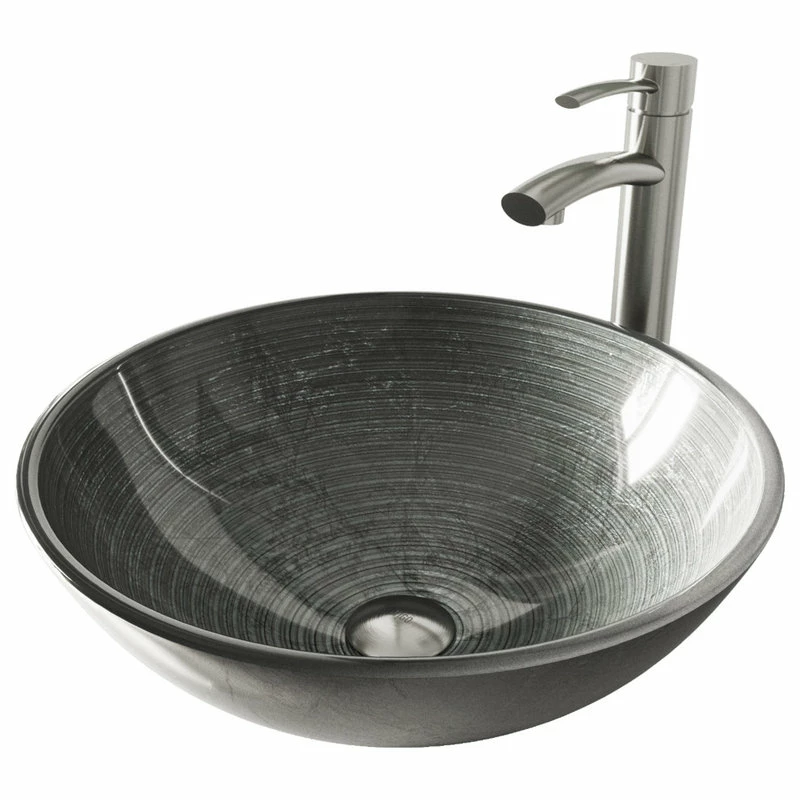 - The VG07053 Simply Silver Glass Vessel Sink features a circular pattern of metallic silver tones.