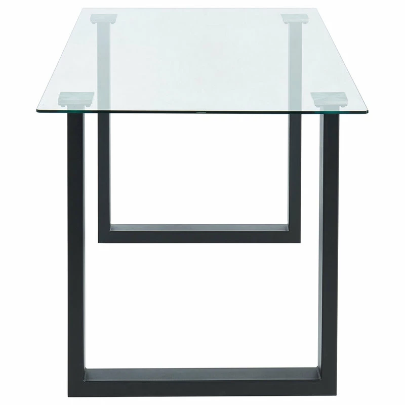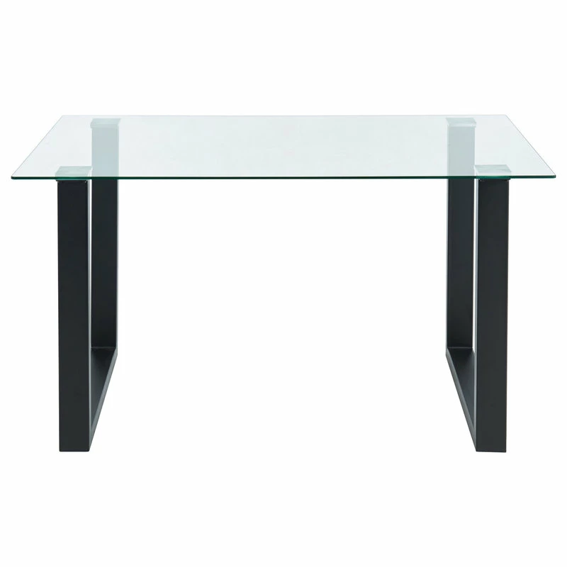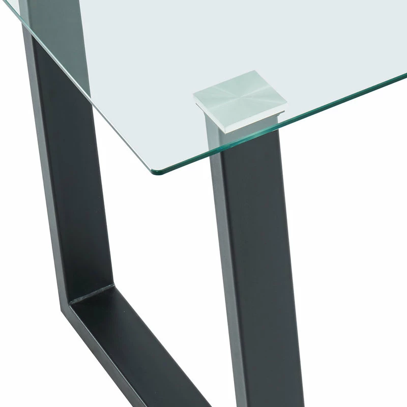 The clean-line design and clear tempered glass gives this table a modern, minimalist look that’s punctuated with the sleek black frame. Large enough for four chairs to fit comfortably, yet small enough to work in the tightest spaces. Or scrap the dining idea and use as a fun, contemporary desk. Minimal assembly is required. Mix and match with a variety of chair styles and colours to create the desired effect.
