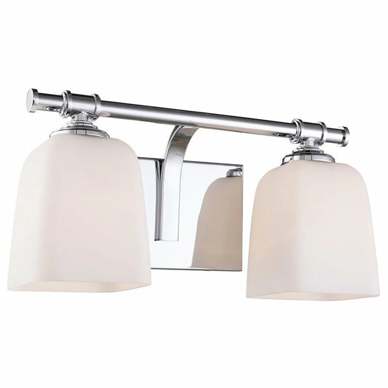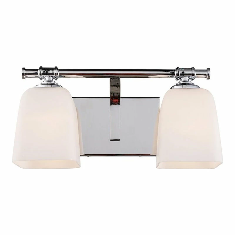 This 2-light bath has round tapered square opal glass supported by an arched frame. Its smooth design is a good fit for many transitional environments.
