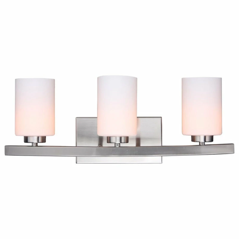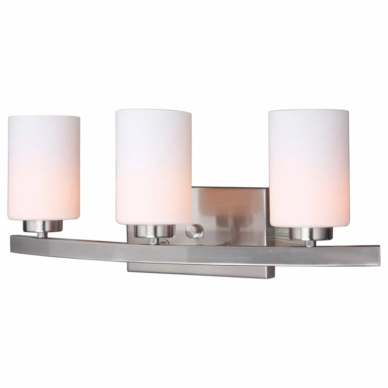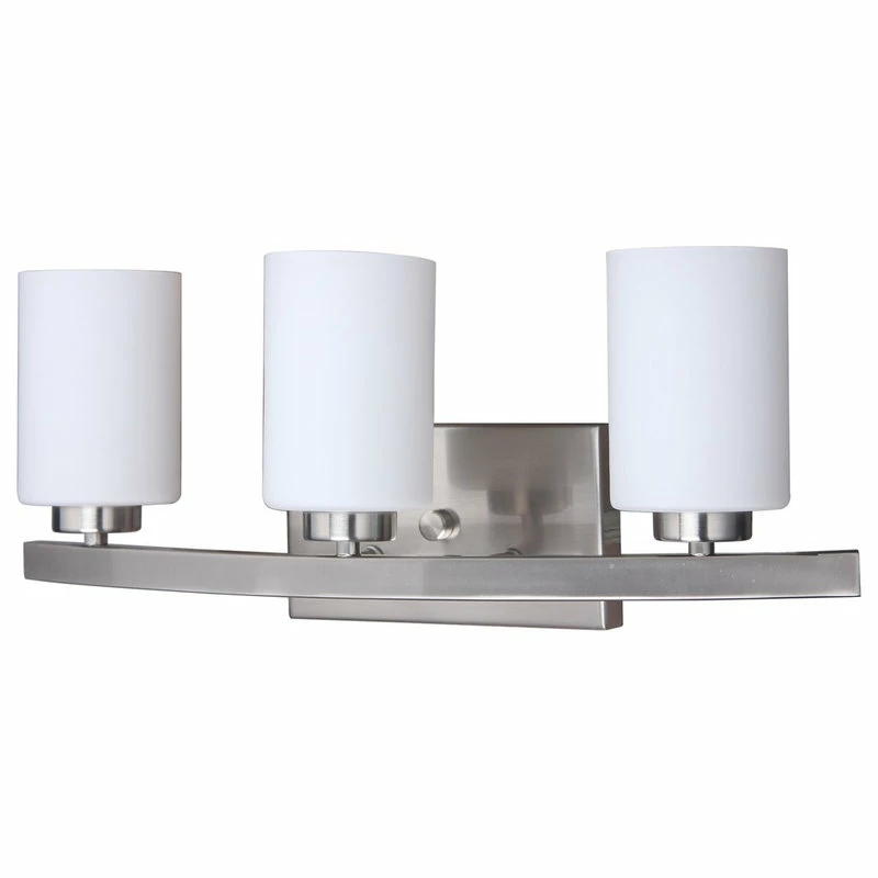 Using a finely curved outward rack, this bathroom fixture is a new set piece that focuses three lights in crystal or opal glass that looks very fine from multiple angles.