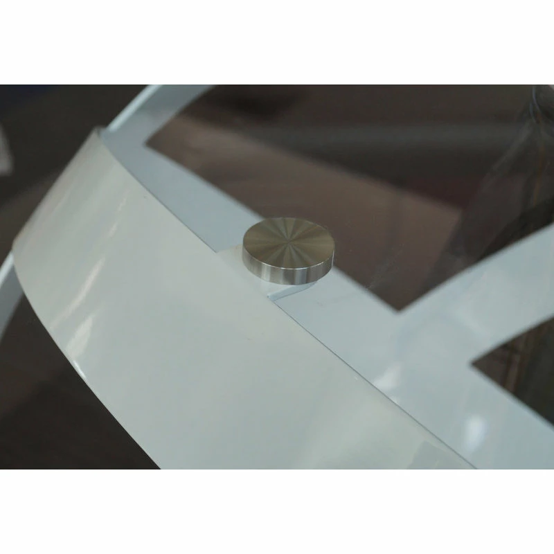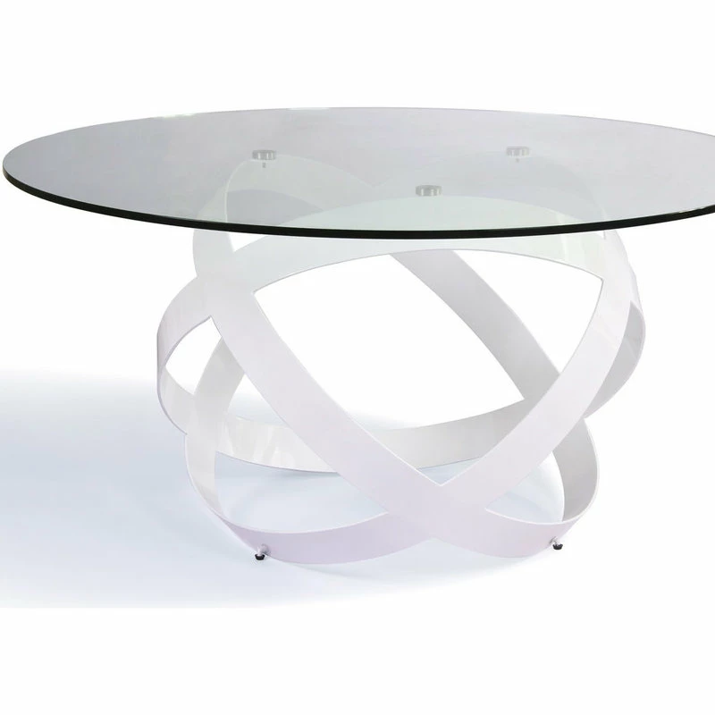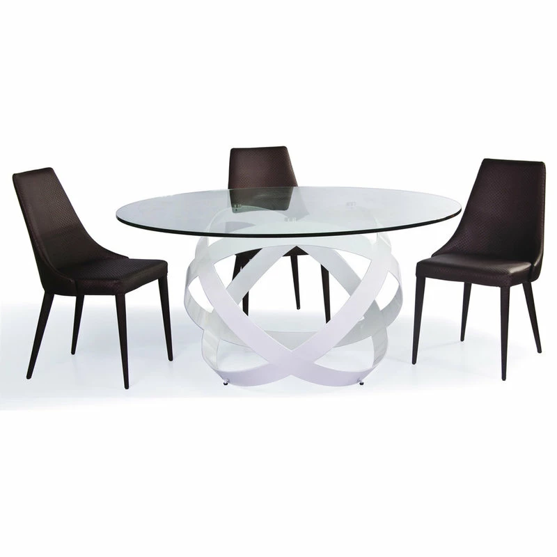 Ready for a whirlwind of eye-catching movement? The Mambo Dining Table boasts a solid clear 59″ glass top supported from below by several matte white ribbons of quality steel. Sure to garner an eyeful at your next social function, the Mambo will never disappoint!
